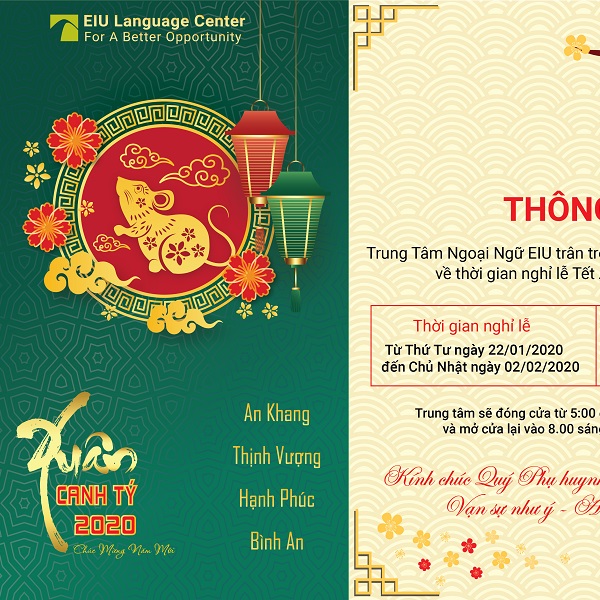 Trước diễn biến phức tạp của dịch cúm do virus Corona, Trung Tâm Ngoại Ngữ EIU (ELC) tại Tầng 6 Becamex Tower xin thông báo đến Quý học viên: TOÀN BỘ CÁC LỚP HỌC TẠI TRUNG TÂM TẠM NGHỈ THÊM MỘT TUẦN, TỪ THỨ HAI [...]